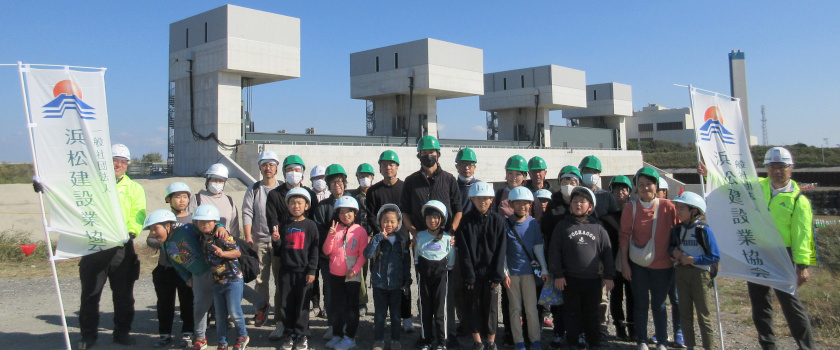 浜松建設業協会 企画委員会では、建設業の役割や魅力をPRし建設業への理解を深めていただくとともに、未来の担い手確保対策の一環として、小学生とその保護者を対象とした建設現場を見学する「親子現場見学会」を毎年秋に実施しています。